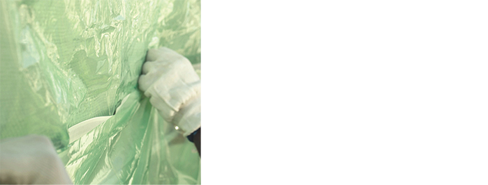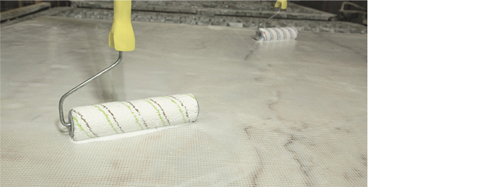 Italian epoxy is applied on front side of the slab to boost its strength and then kept in storage for penetration. Italian epoxy is applied again on front side of the slab for higher density. Slabs are heated in heating chambers.