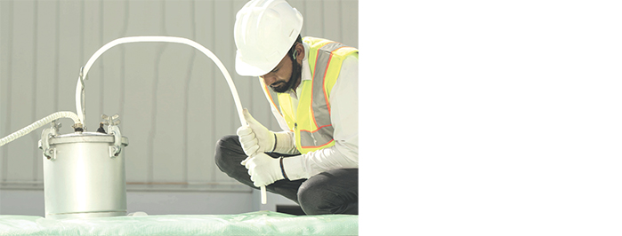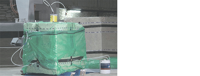 Tenax specially prepared epoxy is applied through the installed pipes to penetrate inside the block.