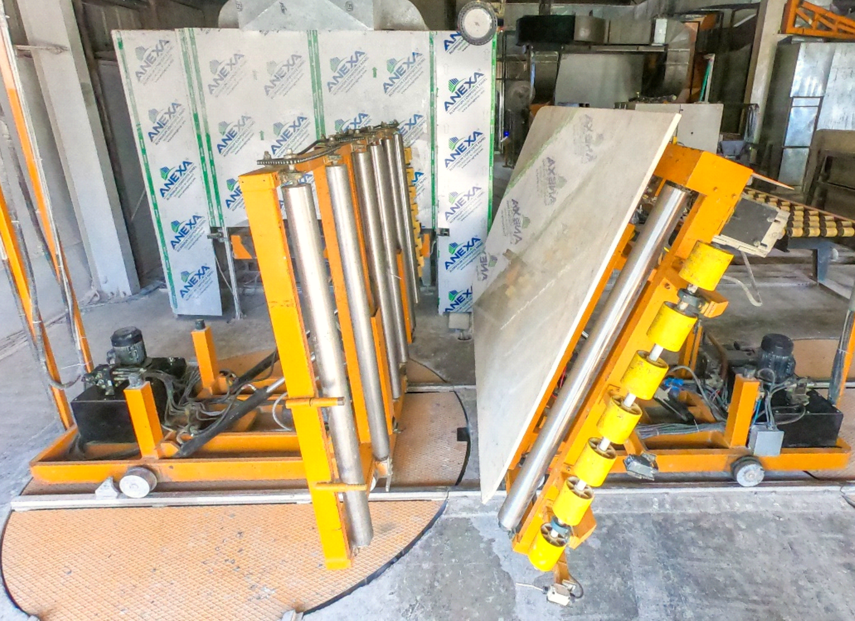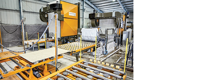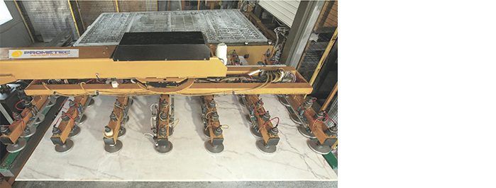Prometec - Robotic Machinery transfers the slabs to the epoxy machine and heated in heating chambers to remove moisture from the slab.