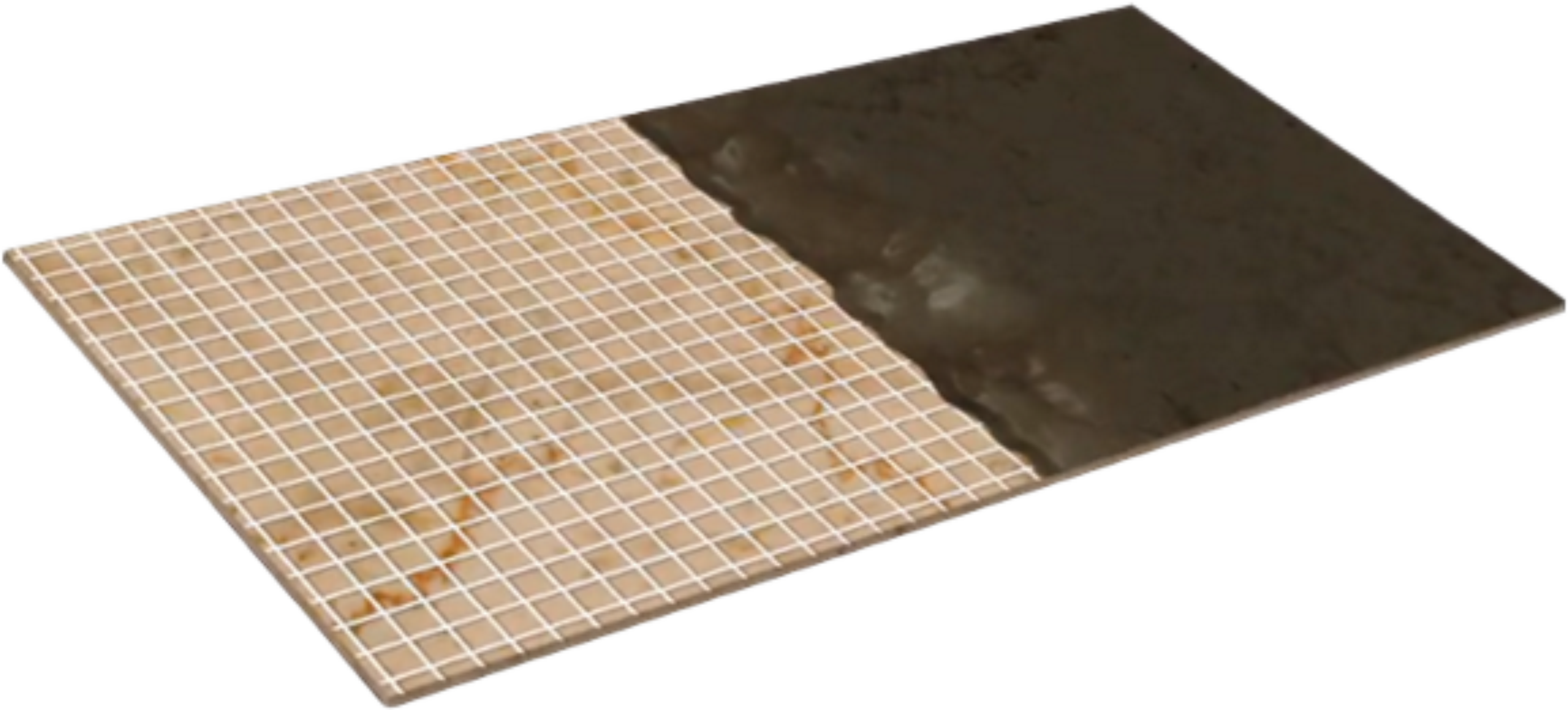 Fibreglass net is applied on backside of the slab for reinforcement.