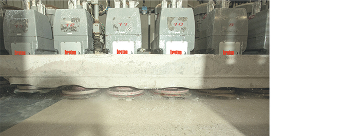Breton Polishing machinery is used to enhance the visual aesthetics and shine of the slab resulting with endless choice of bespoke ï¬nishes and textures like polished, honed, leather and many more